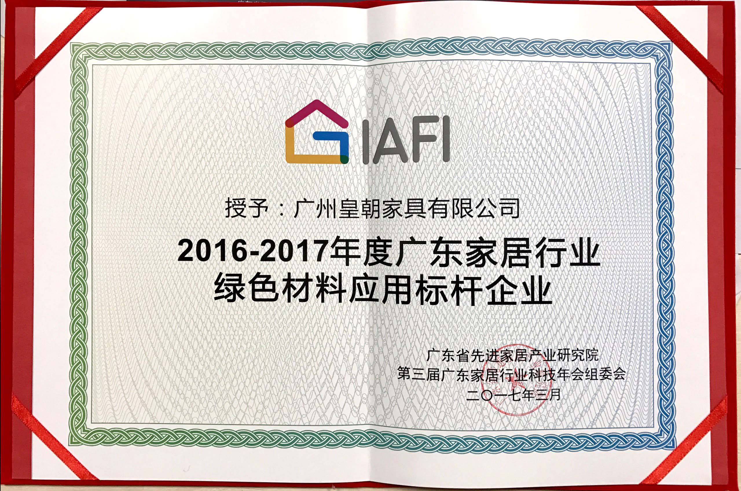 • 2016-2017年度广东家居行业绿色材料应用标杆企业