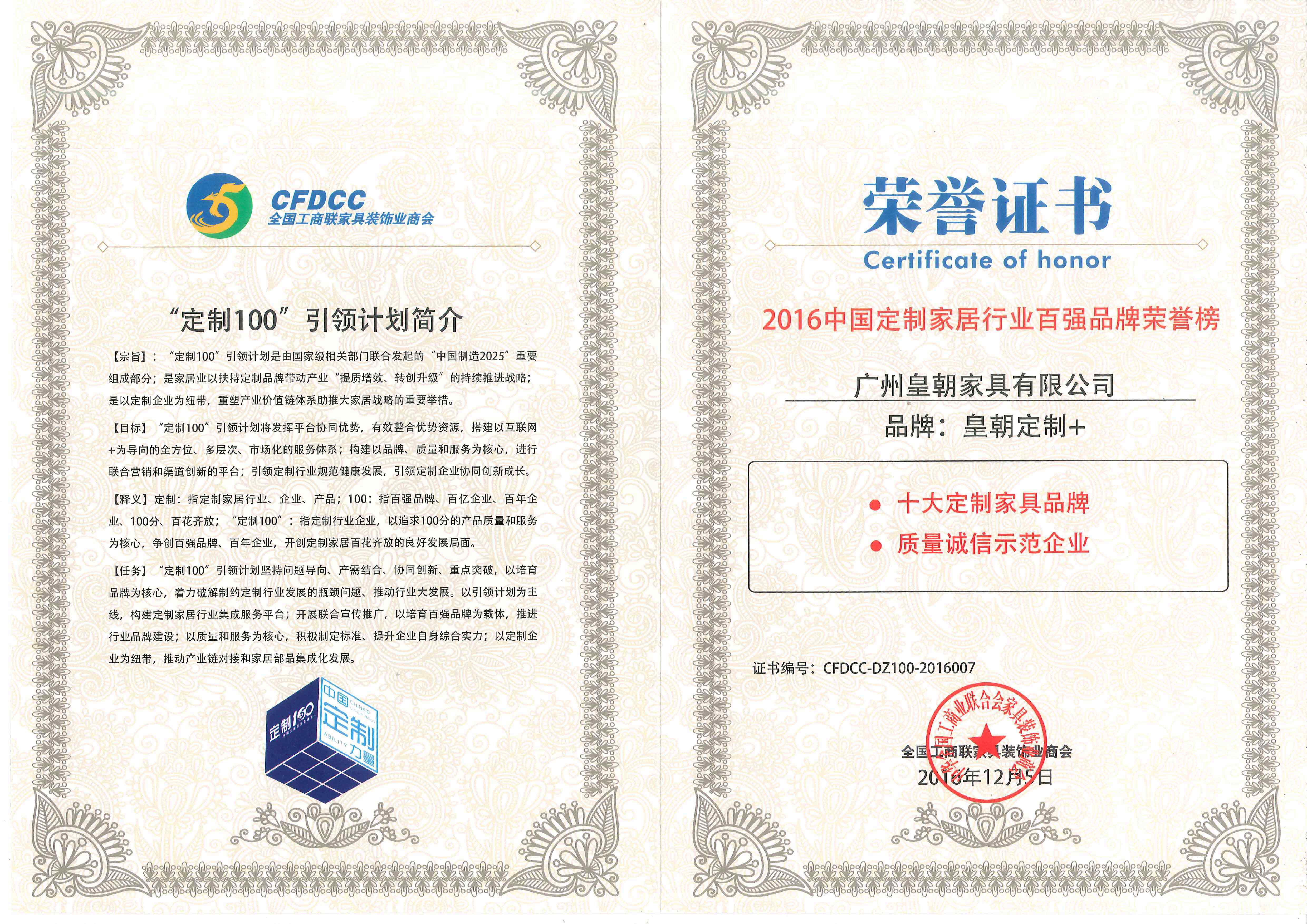 • “2016中国家具产业领军品牌”