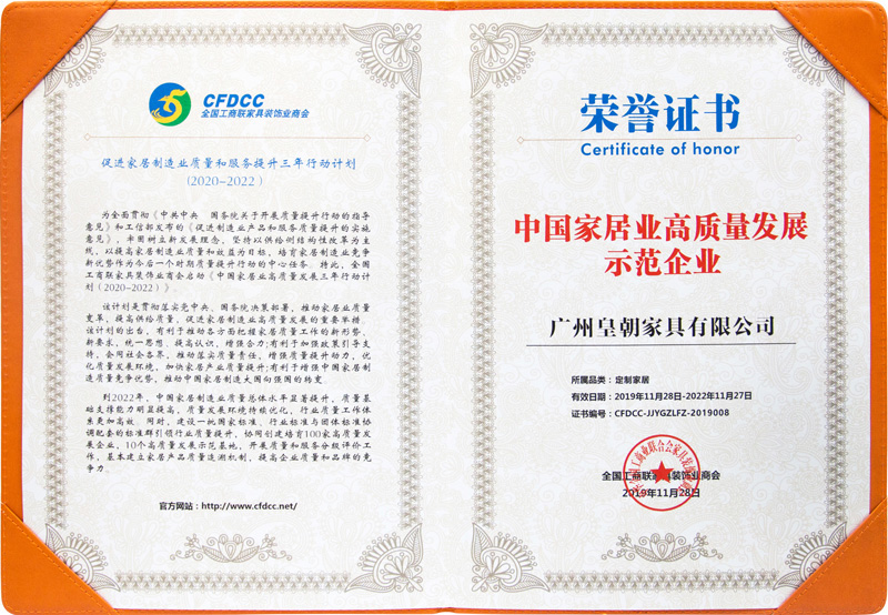 • 中国家居业高质量发展示范企业