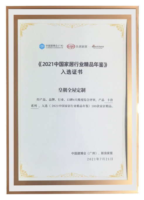 • 2021中国家居行业精品年鉴入选证书