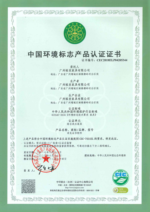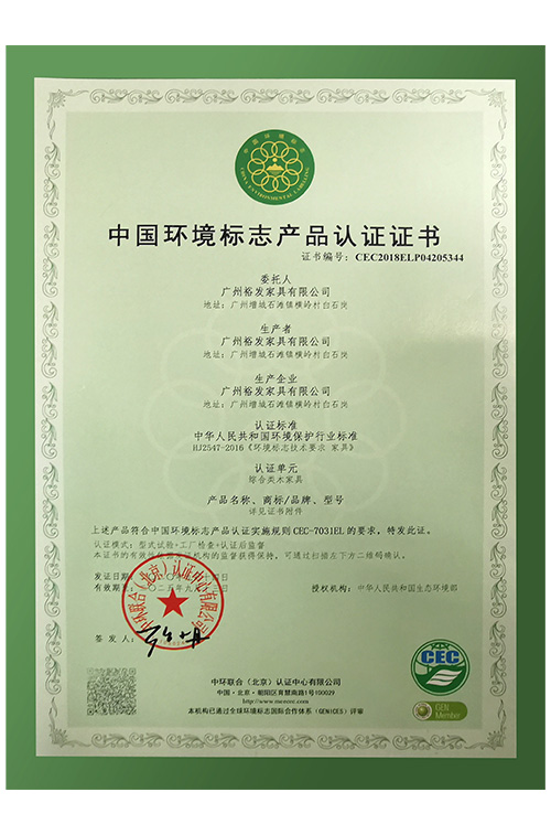 • 中国环境标志产品认证证书