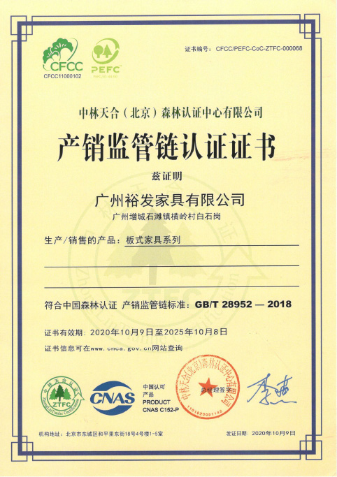 • 产销监管链认证证书