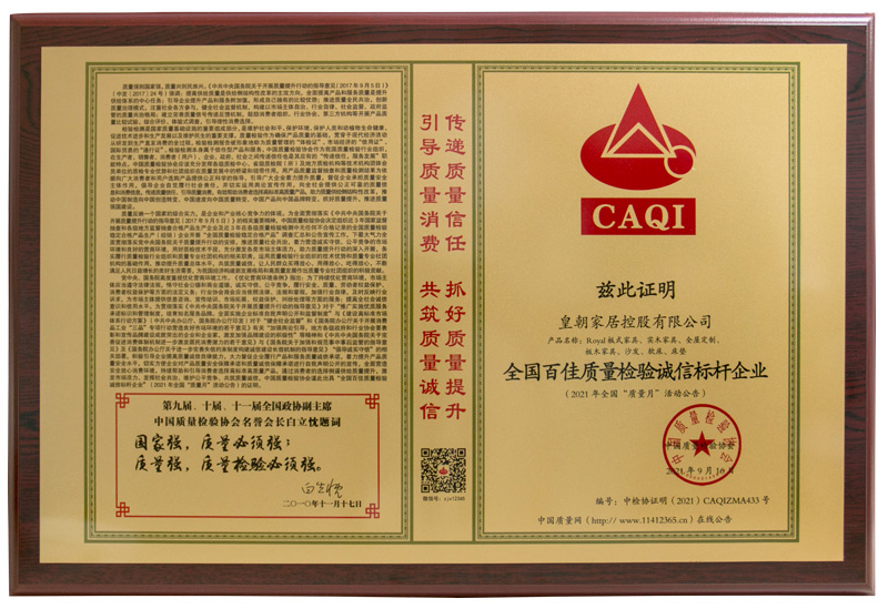 • 全国家具行业质量领先企业