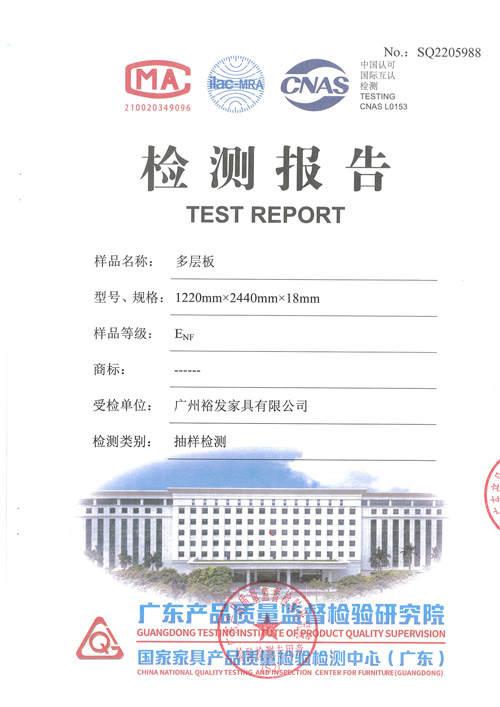 • 皇朝定制+饰面颗粒板合格检验报告