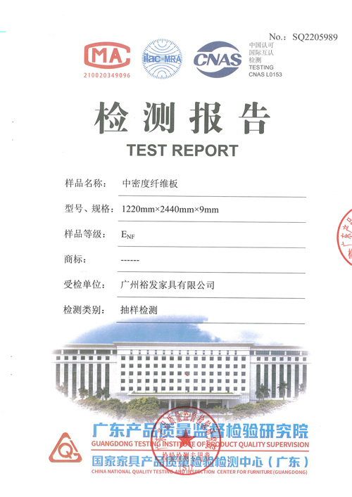 • 皇朝定制+饰面中纤板合格检验报告