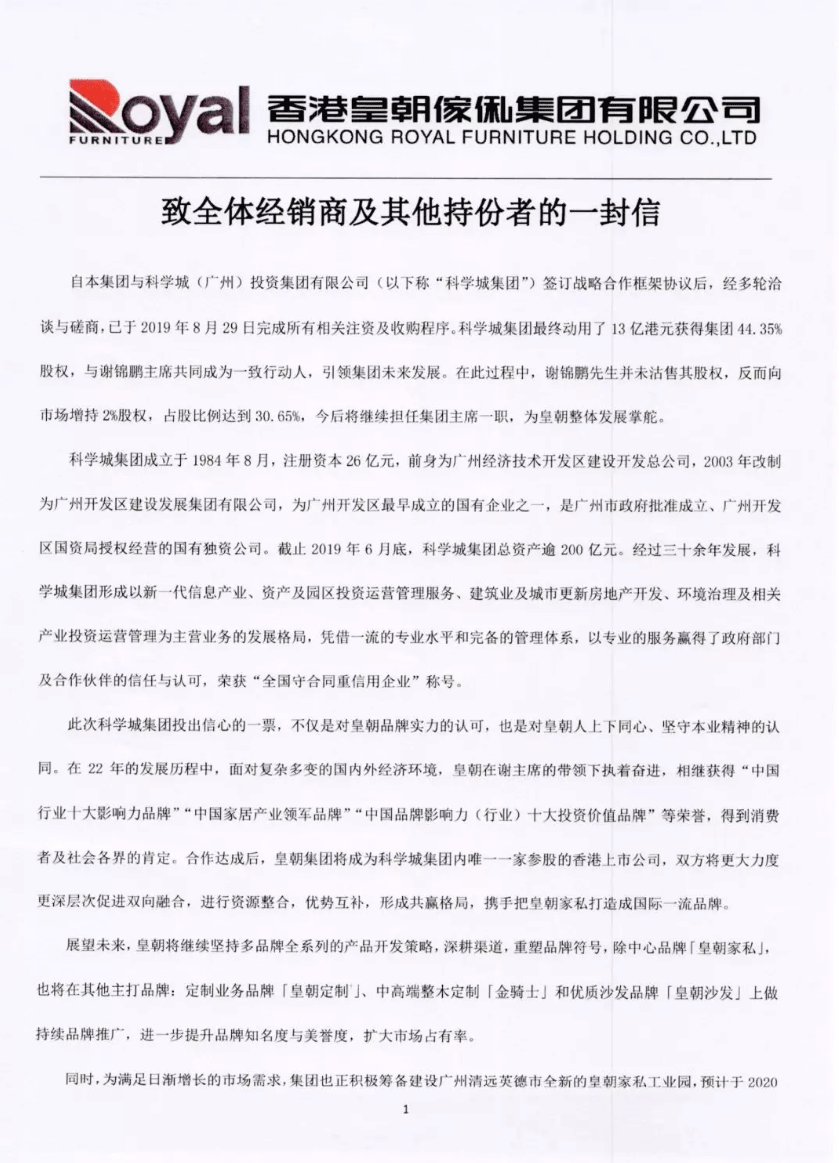 此次科学城集团投出信心的一票,不仅是对皇朝品牌实力的认可,也是对皇朝人上下同心,坚守本业精神的认同,在22年的发展历程中,面对复杂多变的国内外经济环境,皇朝在谢主席的带领下执着奋进 神马影院免费观看,相继获得“中国行业十大影响力品牌”“中国家居产业领军品牌”“中国品牌影响力(行业)十大投资价值品牌”等荣誉,得到消费者及社会各界的肯定,合作达成后,皇朝集团将成为科学城集团内唯一一家参股的香港上市公司,双方将更大力度更深层次促进双向融合,进行资源整合,优势互补,形成共赢格局,携手把皇朝家私打造成国际一流品牌, 。