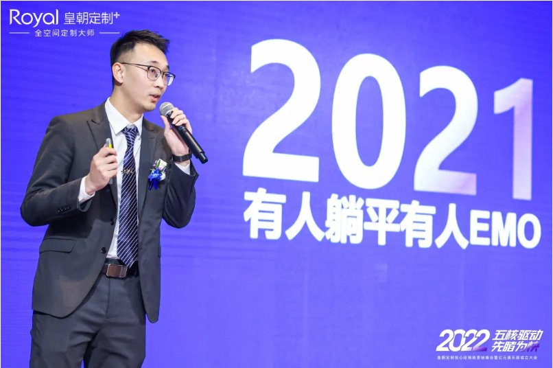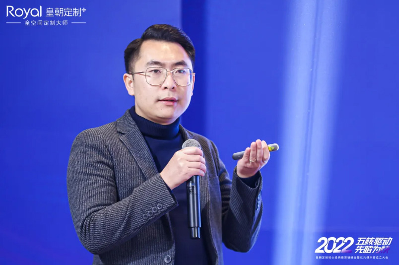 图|皇朝定制营销总监袁丹先生发表《五核驱动,先睹为快》主题演讲 神马在线,讲述皇朝定制2022市场核心力量规划, 。