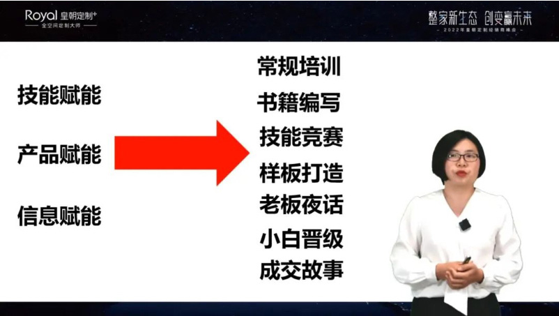 皇朝定制培训总监赵瑞杰女士为大家讲述如何通过规范化的培训规范店面经营。