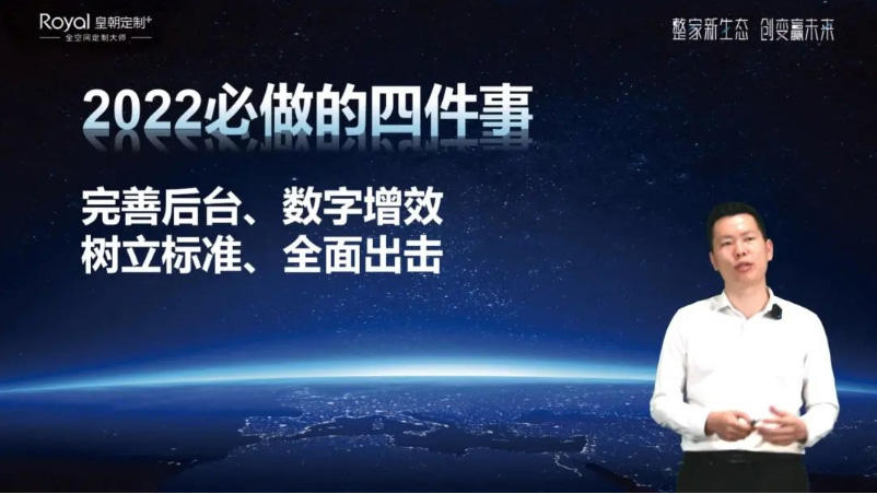 2022年是特别的,恰好是集团上市20周年,也是皇朝定制关键之年。3月28日晚,“整家新生态,创变赢未来”,皇朝定制2022经销商线上峰会开幕,皇朝定制征战整家赛道自此启动。