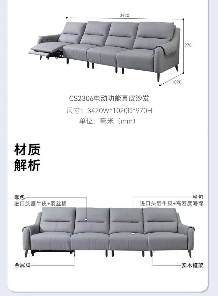 电动功能真皮沙发