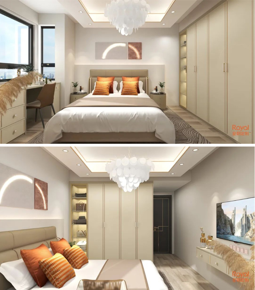 不同家具造型的高矮错落 神马在线,降低了压迫感,更实现了空间的最大利用率,使卧室更加明亮宽敞,还能营造出错落有致的空间美学, 。