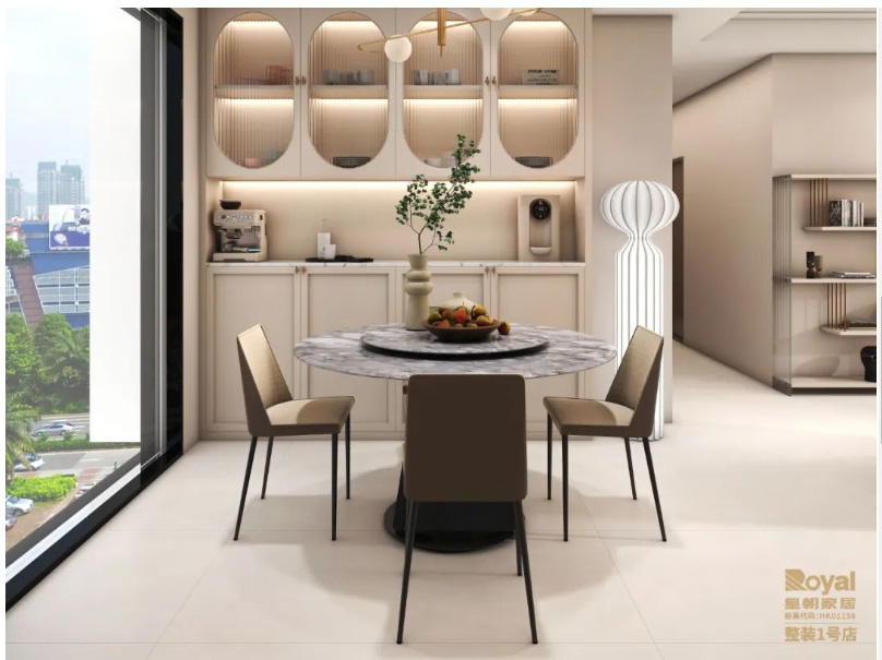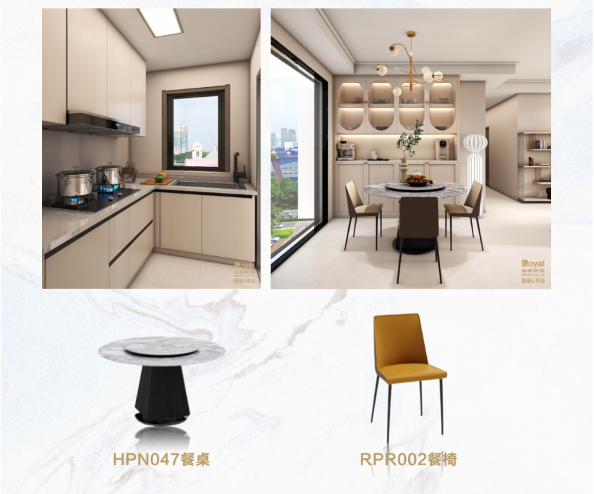 餐厅与厨房一门之隔进行空间分区,厨房L型布局,以储物,收纳作为重点进行定制橱柜,餐厅区域大理石的餐桌椅搭配,精致的装饰,打造了完美的用餐场所,在这里,我们心与心相互交融,享受着浪漫的味道,餐厅酒柜亦结合法式的弧形线条,金属以及条纹玻璃元素进行设计,使整体空间增添些许华丽精致, 神马影院在线